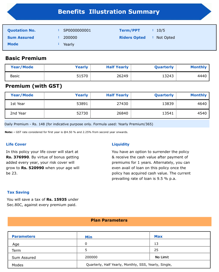 • Death Benefit: Ensures that the child's financial needs are met even if the proposer is no longer around.