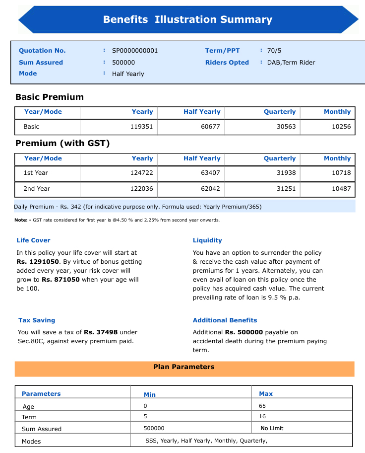 • This plan also offers Survival Benefit in the form of either Regular Income Benefit or Flexi Income Benefit.